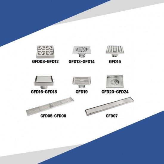 • รางระบายน้ำสแตนเลสแบบมีรูระบายน้ำพร้อมสะดือกันกลิ่น